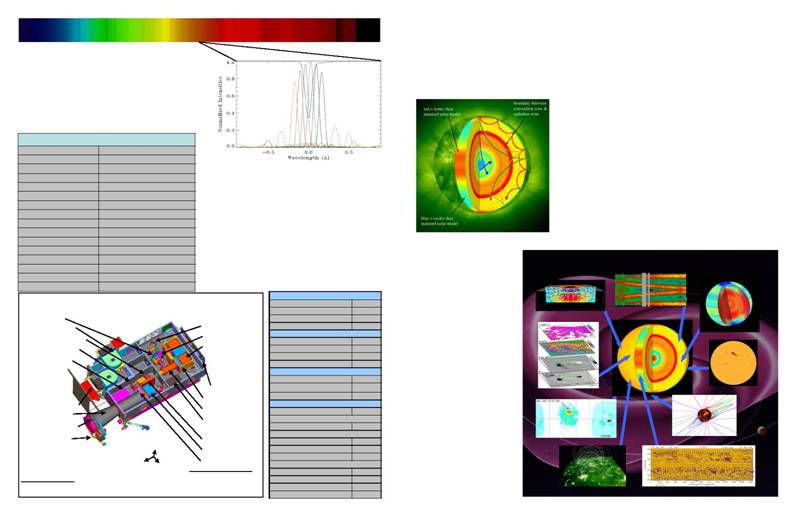 The HMI instrument design and observing strategy are based on the highly successful MDI instrument, with several important improvements. HMI will observe the full solar disk in the Fe I absorption line at 6173Å with a resolution of 1 arc-second. HMI consists of a refracting telescope, a polarization selector, an image stabilization system, a narrow band tunable filter and two 4096² pixel CCD cameras with mechanical shutters and control electronics. The continuous data rate is 55Mbits/s. |