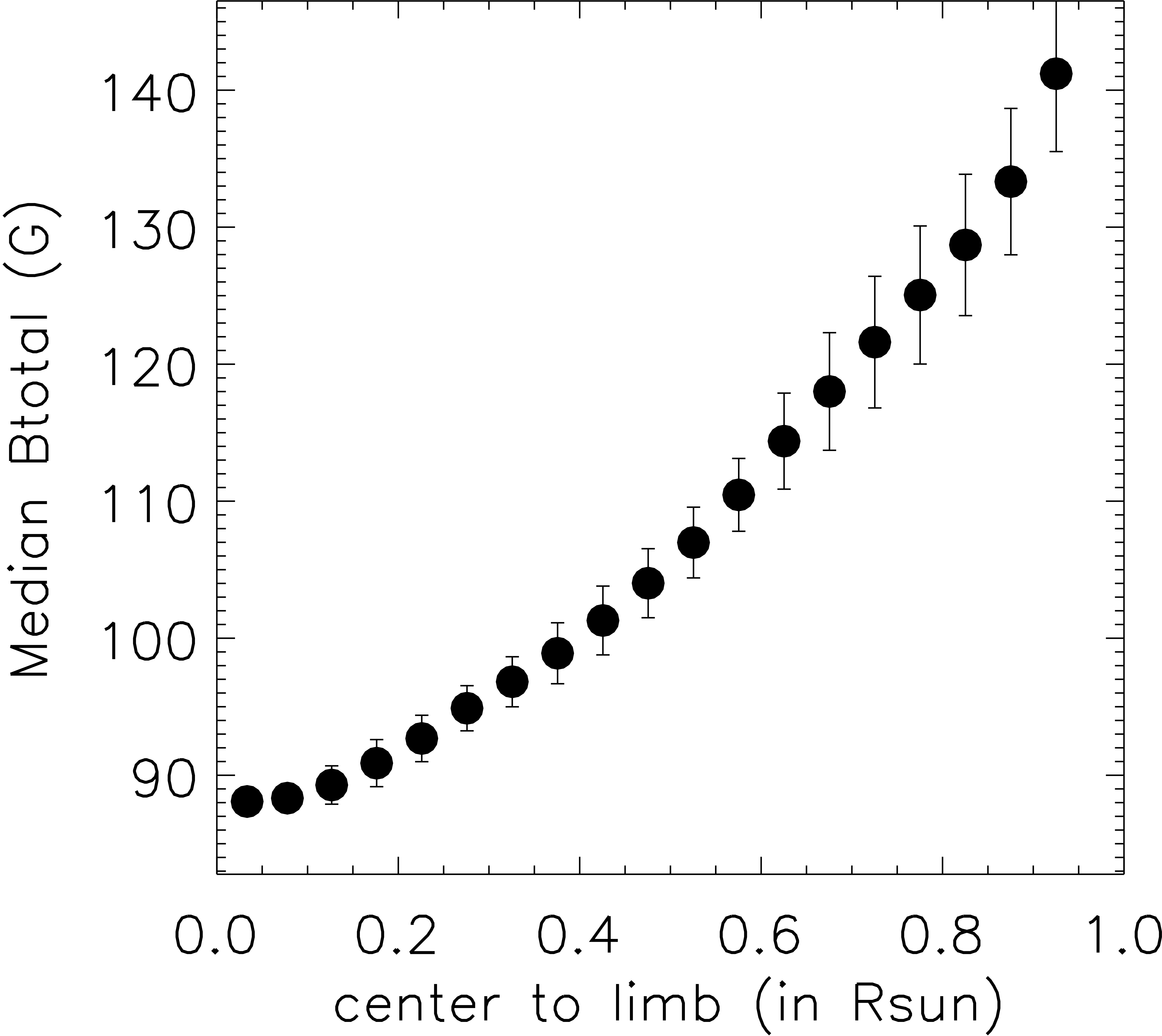 Figure 1 | Median of field strength as a function of center-to-limb distance derived from 709 full-disk vector magnetograms in 2011.