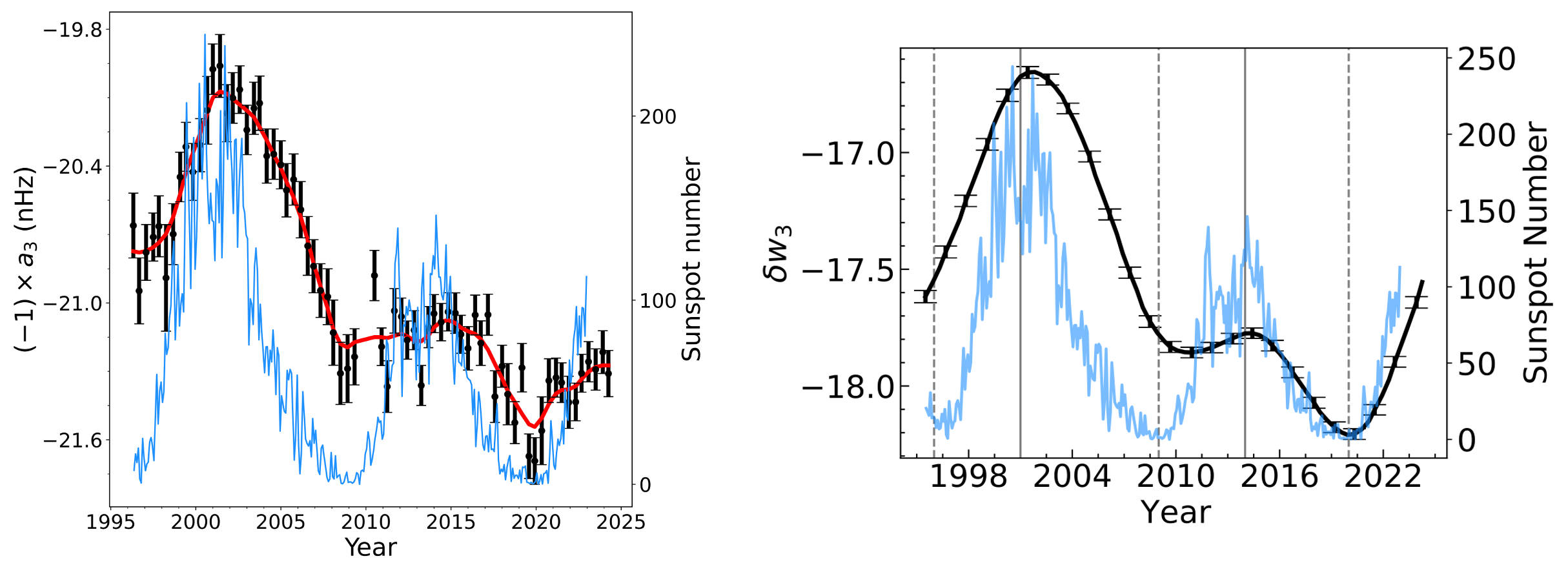 [1]Mandal, K., Kosovichev, A. G., Pipin, V., Korzennik, S., ApJ (2025), DOI: 10.3847/1538-4357/ae061e